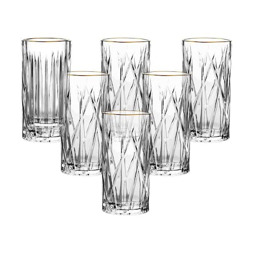 Jogo de Copos Altos L'Hermitage Soho: um toque de luxo às suas bebidas O Jogo de Copos Altos L'Hermitage Soho é a escolha perfeita para quem busca elegância e sofisticação ao servir bebidas. Feitos de cristal ecológico, esses copos de 350ml apresentam um design moderno com detalhes em relevo e uma borda dourada que adiciona um toque luxuoso. Versáteis, são ideais para água, sucos, refrigerantes, coquetéis e drinks, sendo perfeitos tanto para o dia a dia quanto para ocasiões especiais. A qualidade e o refinamento da marca L'Hermitage garantem durabilidade e beleza em cada peça.