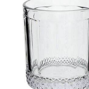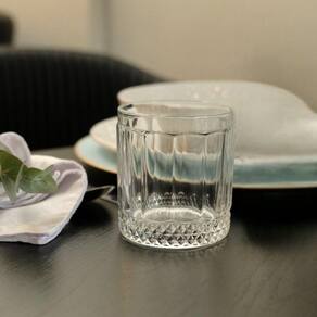 Os copos baixos estilo on the rocks, ou simplesmente rocks, são conhecidos por sua atmosfera clássica e austera. Próprios para degustar ;aquela dose ;de whisky que você reserva para momentos especiais. ;O copo Splendor é produzido em vidro de qualidade, sua base é decorada com um entalhe preciso com decorações geométricas que remetem ao início do século XX, e adicionam um toque retro agradável ao serviço.