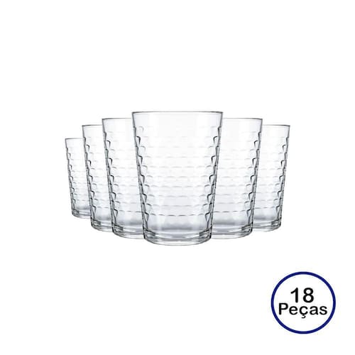 Jogo de 18 copos Nadir Batuque, com 265ml, ideal para todo tipo de bebida.