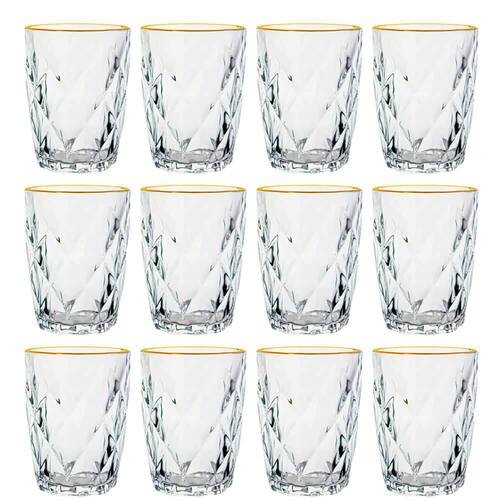 Conjunto de Copos de Vidro 12 peças Transparente Diamond Fio de Ouro 270ml - Lyor