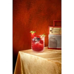 Característica-1 - DIFERENCIAIS: o Jogo de Copos de Vidro Esfera 6 Peças Haus Concept é fabricado em vidro decorado com esferas, deixando os copos com um design vintage e sofisticado. São copos perfeitos para o dia a dia e ocasiões especiais, para servir à mesa ou decorar, trazendo ainda mais requinte para sua casa. Com bojo e boca larga e conhecidos como copos On The Rocks, é o modelo ideal para bebidas que precisam bastante gelo, como Whisky e Negroni (famoso drink italiano).