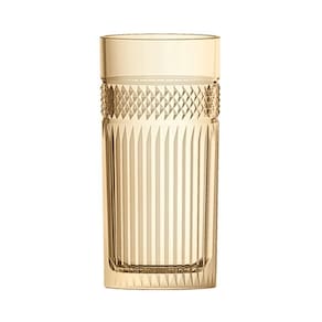 O copo alto Palace é produzido em vidro de qualidade, sua parte superior é decorada com um entalhe preciso com decorações geométricas que remetem ao início do século XX, e adicionam um toque retro agradável ao serviço. O tom Âmbar trás mais requinte a peça.