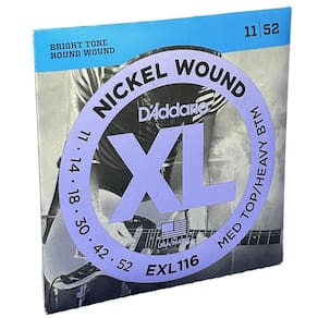 - Modelo Nickel Wound - EXL 116 - Tensão 11-52 - Média Top Heavy BTM - Contém 6 cordas Marca: Daddario Exl116