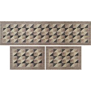 O jogo de cozinha sisal look é imbatível em qualidade e possui excelente custo beneficio. É lavável e não mancha, uma vez que na produção do fio que compõe a superfície deste tapete existe um processo especial que resulta em uma característica hidrófila que inibe a formação de fungos e bactérias e consequente destruição de seu produto. Seu acabamento é diferenciado com overloque nas laterais e com a novidade da barra dobrada nas pontas, o que resulta em melhor fixação no piso. Possui base antiderrapante, primordial para a segurança visto o grande fluxo no ambiente onde é utilizado. Produto: jogo de cozinha sisal look - qualidade: sisal jacquard - densidade: 320 pontos/m - batidas: 400 linhas/m - loops m2: 256.000 - superfície: 100% polipropileno poliseda - medidas: 2 peças 041x060cm + 1 peça 041x160cm - base: antiderrapante.