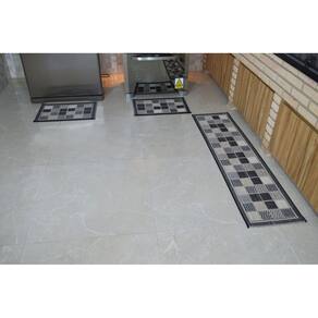 O jogo de cozinha sisal look é imbatível em qualidade e possui excelente custo beneficio. É lavável e não mancha, uma vez que na produção do fio que compõe a superfície deste tapete existe um processo especial que resulta em uma característica hidrófila que inibe a formação de fungos e bactérias e consequente destruição de seu produto. Seu acabamento é diferenciado com overloque nas laterais e com a novidade da barra dobrada nas pontas, o que resulta em melhor fixação no piso. Possui base antiderrapante, primordial para a segurança visto o grande fluxo no ambiente onde é utilizado. Produto: jogo de cozinha sisal look - qualidade: sisal jacquard - densidade: 320 pontos/m - batidas: 400 linhas/m - loops m2: 256.000 - superfície: 100% polipropileno poliseda - medidas: 2 peças 041x060cm + 1 peça 041x160cm - base: antiderrapante. Marca: Não Informado