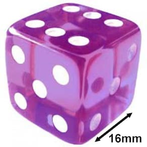 1 Jogo De Dado 16mm (1,6cm) Cor Roxo/Violeta Translúcido - EJ Games