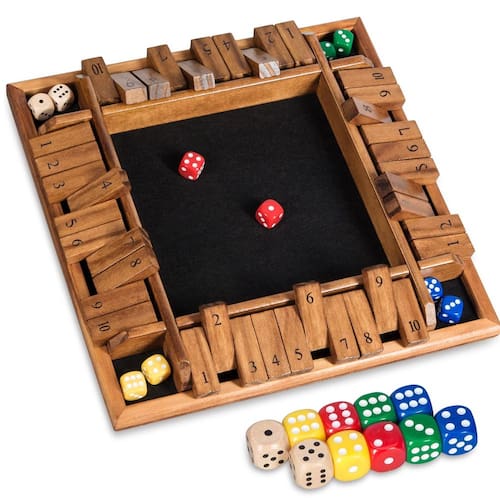 Descrição do produto: O que é Shut The BoxGame? Shut The BoxGamerefere-se a pelo menos dois ou mais jogadores. Os jogadores se revezam jogando dois dados. O número total de pontos que eles jogam é baseado no número de cartas à sua frente. Quem não entregar as cartas na frente deles perde. Se os pontos que forem sacudidos mais tarde virarem todas as cartas de madeira, será considerado um grande vencedor. Jogos divertidos para a família: jogos para toda a família brincarem juntos. Superfície de feltro: a superfície de feltro reduz o ruído produzido quando os dados atingem o tabuleiro. Caixa de embalagem requintada: a caixa de embalagem requintada deste jogo de dados também é adequada como presente para amigos ou crianças. Ferramenta básica de matemática: Shut The Box tornou-se uma ferramenta de aprendizagem para ensinar adição, subtração, multiplicação e divisão básica e estratégias em sala de aula. Informações do produto: Material: madeira/metal Tamanho: 30,5 x 30,5 x 3,6 cm Peso: 0,75 kg/1,65 libras Incluído na embalagem: 1 quadro numérico de madeira. 12 dados + 4 dados sobressalentes 1 manual de instruções (idioma português não garantido). 1 cartão postal. 1 cartão de garantia. Precauções: 1. É proibido lavar com água: os produtos de madeira incham e deformam quando expostos à água. Eles podem ser limpos com um pano de algodão macio e seco. 2. Secar regularmente: evite ambientes úmidos, que são propensos a mofo, e coloque-os regularmente em varandas ventiladas para secar. 3. Crianças menores de 3 anos de idade estão proibidas de usar: as peças do produto não devem ser colocadas ao alcance de bebês e crianças menores de 3 anos não podem ser usadas para brincar sozinhas. - Almofada de feltro macia: as almofadas deslizantes são afixadas na parte inferior dos 4 jogadores Shut The Box, que é efetivamente antiderrapante. É de uma variedade de materiais de tora. O produto tem uma sensação mais em camadas e os quatro lados são polidos sem rebarbas; a almofada de feltro preta macia pode reduzir o ruído e sentir a textura. Você pode compará-lo com outros produtos - Material de madeira maciça de alta qualidade: o jogo de dados Shut The Box é feito de madeira natural de alta qualidade, que é uniformemente colorida e não desbota. Cada placa numérica de madeira é conectada em série com hastes de metal, e há discos de metal separados entre o quadro numérico, não acumulam e reduzem o desgaste, têm excelente durabilidade e robustez e podem ser reutilizados por um longo tempo - Flip de tabuleiro digital e lógica aritmética: design flip do jogo Shut The Box para quatro jogadores, pode ser colocado plano ou virado a 40°, e o conteúdo frente e verso torna a jogabilidade mais interessante. O jogo envolve cálculos matemáticos e pensamento lógico. Os jogadores precisam manter a situação geral em mente e encontrar maneiras de ganhar. Isso não apenas exerce a capacidade de combinar números e pensamento lógico, mas também cultiva a capacidade de perceber números - Presente clássico e amplamente utilizado: este jogo de dados de madeira é perfeito para reuniões de família, piqueniques ao ar livre, festas de aniversário, viagens e socialização, etc. É um ótimo jogo digital interativo social interno e externo que ajuda a cultivar o seu e o carinho de sua família ou o carinho de um amigo; o conjunto de jogos de dados fecha a caixa vem com uma caixa de embalagem requintada, clássica e divertida, atemporal, e o melhor presente para aniversários, Ano Novo, Natal, Dia das Bruxas, Ação de Graças e Dia das Crianças - Conjunto de jogo de números requintado: o jogo de dados de caixa fechada é muito popular, adequado para 1-4 pessoas jogarem ao mesmo tempo, com 10 tabuleiros numéricos de cada lado, o conjunto contém 12 dados coloridos padrão e 4 dados de madeira sobressalentes, bolsa de armazenamento de dados adicional, também vem com instruções, etc., adequado para iniciantes brincarem, crescimento infantil e reuniões de adultos, etc