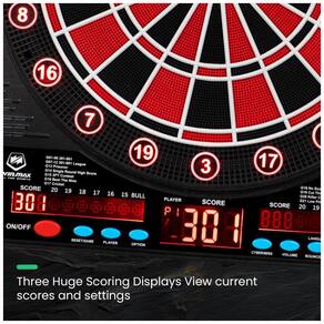 Com uma impressionante variedade de 34 jogos e 355 variações, até 8 jogadores podem participar simultaneamente. Além disso, há a opção de competir contra oponentes controlados pelo computador, oferecendo 5 níveis de dificuldade diferentes para desafiar suas habilidades. O dardo eletrônico pode ser alimentado pelo adaptador de energia incluído, permitindo que você o utilize em qualquer espaço sem ocupar mais espaço do que o necessário.