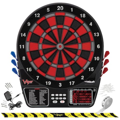 Marca: Viper Material: Nylon Cor: Preto Dimensões do Produto: 7,6 cm (L) x 50,8 cm (A) Peso do Item: 2 kg Componentes Inclusos: Tabuleiro eletrônico Viper 797, acesso rápido aos modos 301 e Countup através do painel de botões, anel de captura ampliado, visor de pontuação de 71 cm², dardos e pontas extras, 43 jogos e 241 opções de pontuação Formato: Redondo Espessura do Item: 3 cm Dimensões da Embalagem: 63,5 cm (C) x 53,3 cm (L) x 5 cm (A) Peso da Embalagem: 2,54 kg Modelo: 797 Público Sugerido: Unissex-adulto Número de Itens: 1 Código da Peça: 42-1017 Tamanho do Alvo: 39,4 cm (tamanho regulamentar para competições) Marca: Não Informado