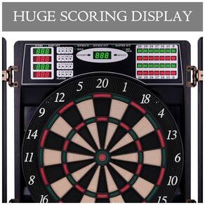 Os segmentos côncavos e o fio ultrafino minimizam os ressaltos, enquanto um anel de captura amplo protege suas paredes de danos, oferecendo uma área de aterrissagem de 360 graus para qualquer dardo perdido. O display de LED frontal e o painel de controle intuitivo garantem uma visualização clara das pontuações e estatísticas, eliminando a necessidade de anotações manuais. O volume ajustável em 7 níveis permite ajustar o som conforme sua preferência.