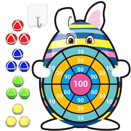 - ?Jogos de festa de Páscoa em família?O brinquedo de alvo de coelho da Páscoa é um bom jogo interativo entre pais e filhos que acompanha as crianças a crescer e trazer diversão para as crianças. O jogo de tabuleiro de dardos também é um bom ajudante para aliviar o desconforto e atmosfera ativa. As bolas têm 4 cores que suportam competição multijogador, adequadas para qualquer idade, enriquecem a vida, aproximam-se umas das outras. Ótimo jogo de festa divertido! !
