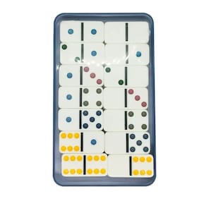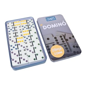 Este conjunto vem com 28 peças feitas em plástico resistente, com espessura de 10mm, proporcionando durabilidade e conforto ao manusear. Acompanha uma prática lata metálica para armazenar e transportar com facilidade, mantendo as peças organizadas e protegidas. Perfeito para momentos em família, jogos com amigos ou como opção educativa para crianças desenvolverem o raciocínio lógico.