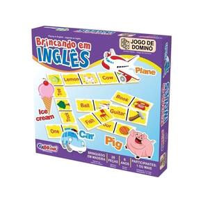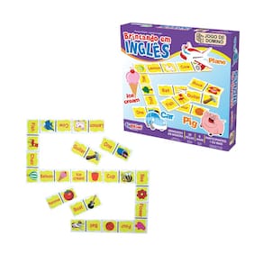 Contém 28 peças coloridas e estampadas de 7x3cm com palavras em inglês o seu respectivo desenho.
