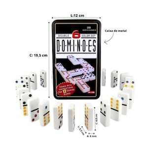 O jogo de dominó com 28 peças de plástico é um conjunto completo que oferece diversão e entretenimento para os jogadores. O conjunto vem em uma caixa de metal durável, projetada para proteger e armazenar as peças com segurança. As peças de dominó são feitas de plástico resistente e durável, com uma forma retangular. Cada peça mede cerca de 4,8 cm de comprimento e 2,3 cm de largura. Elas são leves e fáceis de manusear, proporcionando uma experiência confortável durante o jogo. O conjunto também inclui um manual de instruções detalhado, fornecendo orientações claras sobre como jogar o dominó. O manual descreve as regras básicas do jogo, sugere variações populares e explica como contar os pontos ao final de cada partida.
