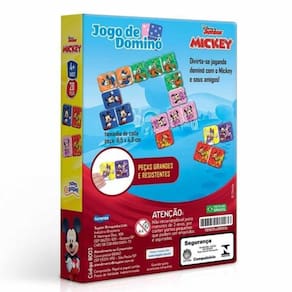 Jogo De Dominó Infantil - Disney Junior - Mickey - 28 Peças - Toyster Jogo de Dominó Infantil - Disney Junior - Mickey - 28 Peças - Toyster: Neste jogo as crianças aprendem brincando a reconhecer os personagens da Disney Junior. Divirta-se com esta brincadeira colorida. Jogo de dominó com 28 peças grandes e resistentes do Mickey e seus amigos. Peças em papel e papel cartão. Com alta qualidade de impressão para valorizar cada detalhe das imagens. É um ótimo passa tempo para crianças, adolescentes e adultos. Tamanho de cada peça 8.5 x 4.8 cmINFORMAÇÕES:- Produto: Jogo de Dominó Mickey- Marca: Toyster- Coleção: Disney Junior Mickey- Tipo: Jogo de Dominó Infantil- Categoria: Jogos Infantis e Tabuleiros- Dimensões: 8.5 x 4.8 cm (peças)- Conteúdo: 28 Peças - Recomendação: para crianças a partir de 04 anos de idadeESPECIFICAÇÕES:- Referência: 8003- Código de Barras: 7896054080036- Embalagem (C x A x L): 13.2 x 20.5 x 4.5 cm- Embalagem (Peso): 0.60 kg- Material / Composição: papel e papel cartão- Registro: CE-BRI/IQB 002320 NM 300/602 OCP 0006- Certificado: Órgãos Autorizados - OCPS (Organismos de Certificação de Produtos)BENEFÍCIOS DE BRINCAR DE DOMINÓ:- Eleva a autoestima- Exercita a memória- Estimula o raciocínio- Exercita o imaginário- Desenvolve a criatividade- Desenvolve percepção visual- Desperta a atenção e curiosidade- Desenvolvimento neuropsicológico- Estimula habilidades motoras básicas- Incentiva a comunicação e linguagem- Desenvolve aspectos emocionais e afetivo- Estimula o reconhecimento de formas e coresAVISO: - As imagens são meramente ilustrativas- Os tamanhos e medidas são aproximados- As cores e estampas dos produtos podem ter variações- As informações são de responsabilidade do fabricante ou fornecedor