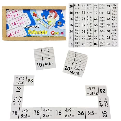 Conteúdo da Embalagem: 1 Jogo De Dominó Infantil De Tabuada Com 28 Peças Cada.