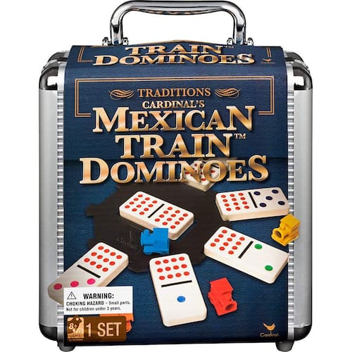 A noite de jogo em família está de volta com este trem mexicano Dominoes definido pelo Cardeal. Melhore as habilidades matemáticas simples das crianças com uma rodada de dominós cheia de diversão. Os entusiastas do trem vão adorar os pequenos trens coloridos s como peças de jogo. O Trem Mexicano é uma versão moderna do Dominoes, jogado com 91 dominós duplos-12. Por causa de sua simplicidade, ele pode ser jogado por quase qualquer pessoa, em qualquer lugar. Dependendo do tipo de jogo que você joga, ele pode durar desde um jogo simples de 20 minutos até um jogo de 12 horas de duração. Também pode ser jogado com 6 ou 9 peças duplas para jogos mais curtos. Seja jogos para adultos para a noite de jogos ou jogos familiares para toda a casa, o Trem Mexicano tem tudo para você.