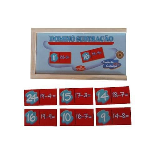 Brinquedos Educativos - Jogo de Dominó Subtração em MDF 28 peças