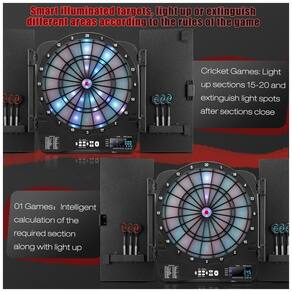 Este tabuleiro eletrônico calcula inteligentemente os segmentos ideais para lançar os dardos, de acordo com as regras do jogo, e os ilumina para orientar sua jogada em cada rodada. Experimente novos jogos de dardos de forma divertida e intuitiva!