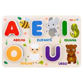 Jogo De Encaixar Vogais Animais Madeira 003133 - Toyster DESCRIÇÃO DO PRODUTO