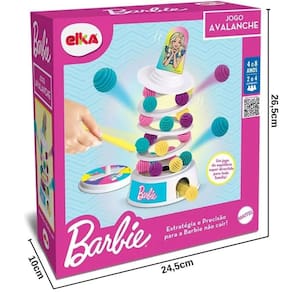 Jogo De Equilíbrio Avalanche Barbie - Elka DESCRIÇÃO DO PRODUTO A Barbie acabou indo parar no topo de uma torre Agora, ela tenta se equilibrar para não cair. Avalanche é um jogo divertido que exige estratégia e precisão. A torre é formada por 36 bolinhas instáveis, empilhadas entre aros. A cada rodada, a roleta vai sortear a cor da bolinha que você deverá empurrar, mas atenção: a torre com a Barbie não pode desmoronar CARACTERÍSTICAS TÉCNICAS: Conteúdo da Embalagem: 1 Base, 1 Personagem, 2 Varetas, 4 Aros, 36 Bolinhas Coloridas, 1 Roleta e adesivos Dimensões Aproximadas da Embalagem: 26,5 cm x 25 cm x 10 cm (Altura x Largura x Comprimento/Profundidade). Material/composição: Plástico Idade Mínima Recomendada: A partir de 4 anos Participantes: A partir de 1 pessoa Alimentação: Não se aplica Marca: Elka Referência: 1324