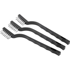 1 Jogo com 3 escovas manuais iguais, de aço inox com cabo de 175 mm de comprimento