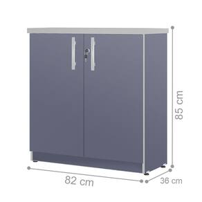 Pés: Sim, na Mesa pés em aço e no Armário pés com niveladores de altura. Cor Principal: Azul.