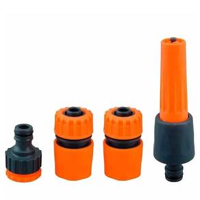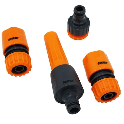 Jogo de Esguicho Adaptador 1/2 e 3/4 Engate Rápido 4 Peças para Jardim - Marca: Guepar - Referência: 861-49310 - Indicado para cuidar do seu jardim, possui um sistema completo de irrigação - 1 Adaptador para engate rápido - Adapta-se a torneiras de 1/2 e 3/4 - 2 Engates Rápidos - 1 Esguicho - Material: PVC - Cor: Laranja e preto - : 90 dias Marca: Não Informado