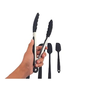 As espátulas são ótimas para te auxiliar na hora de preparar diversos tipos de receitas como molhos, misturas de bolo, cremes, etc. Além disso, te permite limpar os cantos de tigelas e formas sem desperdiçar nada Feito em silicone, não risca panelas e outros acessórios. De excelente qualidade, são super resistentes e fáceis de limpar. O Pegador é ótimo para virar alimentos durante seu preparo. As pontas são revestidas em silicone, permitindo firmeza na hora de pegar o alimento e também não riscam panelas e frigideiras. Resistente e com excelente estrutura, é um item super versátil que não pode faltar em qualquer cozinha