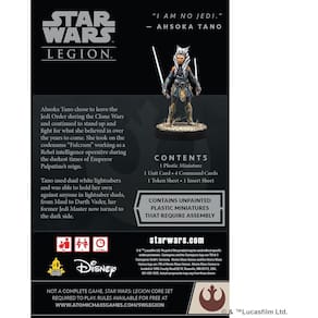 Star Wars: Legion Ahsoka Tano Operative Expansion - Fulcrum Joins The Rebellion! Miniaturas de mesa jogo de estratégia para crianças e adultos, idades acima de 14 anos, 2 jogadores, 3 horas de - Operativa favorita dos fãs: Ahsoka Tano, conhecida como "Fulcrum", faz sua estreia na Legião como uma formidável Operativa da Rebelião, trazendo suas habilidades únicas para o campo de batalha. - Comandante e guerreiro: Ahsoka combina seus anos de experiência como comandante de Guerras Clônicas com seu domínio de sabres de luz, tornando-a uma força versátil para a Rebelião. - CARTÕES DE COMANDO DE ASSINATURA: Desbloqueie o poder de Ahsoka com suas quatro cartas de comando exclusivas, permitindo que ela melhore suas habilidades de combate e proteja seus companheiros rebeldes. - EQUIPE COM SABINE WREN: A potente carta de comando de Ahsoka a une a Sabine Wren, oferecendo vantagens estratégicas que podem mudar o rumo da batalha. - Defenda a Rebelião: Ahsoka Tano está aqui para defender a Rebelião durante seus momentos mais vulneráveis, tornando-a uma adição essencial à sua coleção Legion.