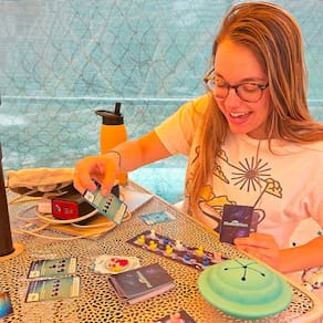 O jogo de expansão Abducktion realmente torna as coisas realmente interessantes para pessoas que molharam suas nadadeiras com o jogo básico, a expansão torna o jogo um novo nível de competição e desafio. Ele expande o jogo para até seis jogadores, e nós mencionamos que vem com patos brilhantes verdes? ? - Expande o jogo para até 6 jogadores (inclui 2 tabuleiros extras e 40 patos extras!) - O que está incluído: 6 cápsulas de pesquisa, 20 novas cartas desafiadoras de formação, 2 quadros adicionais e 40 (quarenta!!) Super Powered Glitter Ducks com todas as novas capacidades! - Loucura de até 6 jogadores: o pacote de expansão expande o jogo para até 6 jogadores, perfeito para a noite de jogos da família ou amigos. Supere seus oponentes com astúcia ou engano! - Faixa etária: Abducktion é um jogo surpreendentemente estratégico para adultos (e crianças inteligentes), recomendado para maiores de 12 anos. Ligue seu cérebro e pense rápido – suas habilidades de raciocínio ajudarão você a ganhar mais patos! - Fácil de jogar: Aprenda em dois minutos. Os jogos com o pacote de expansão levam um pouco mais de tempo, apenas 25 a 30 minutos para jogar, mas ainda são estratégicos o suficiente para exigir muita habilidade e fazer com que a vitória seja muito, muito boa - Alerta de atualização: aprimoramos nossas cores de pato para melhorar a acessibilidade dos daltônicos. Se o seu pacote de expansão tiver cores inesperadas, avise-nos e enviaremos as cores certas sem custo extra!