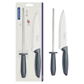 Qualidade e charme na sua cozinha com o jogo de faca com chaira Tramontina Plenus com lâminas em aço inox e cabos de polipropileno cinza 2 peças. Perfeitos para diferentes necessidades, podem ser do preparo dos alimentos ao serviços de mesa. Podem ainda ser levados à máquina de lavar louças. São as peças ideais para sua cozinha que atendem aos melhores momentos do seu dia junto com a família.