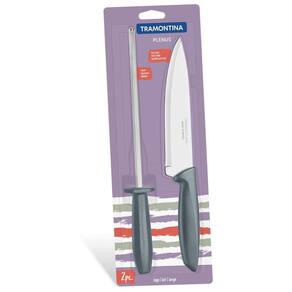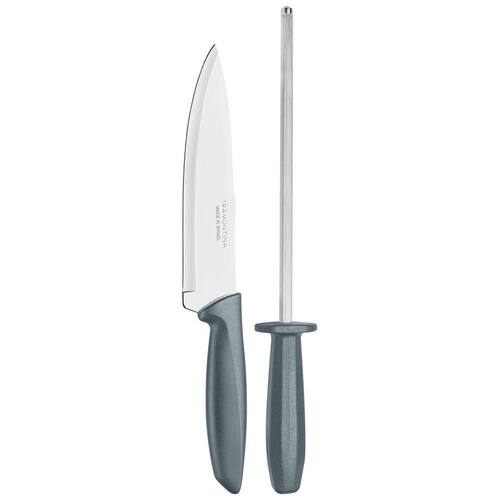 Jogo de Faca com Chaira Tramontina Plenus com Lâminas em Aço Inox e Cabos de Polipropileno Cinza 2 Peças Qualidade e charme na sua cozinha com o Jogo de Faca com Chaira Tramontina Plenus com Lâminas em Aço Inox e Cabos de Polipropileno Cinza 2 Peças da Linha Plenus. Perfeitos para diferentes necessidades, podem ser usados do preparo dos alimentos ao serviços de mesa. As duas peças são produzidas com cabos em polipropileno na cor cinza e possuem lâmina é em aço inox, fáceis de manusear e muito resistentes. Podem ainda ser levados à máquina de lavar louças. São as peças ideais para sua cozinha que atendem aos melhores momentos do seu dia junto com a família.