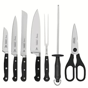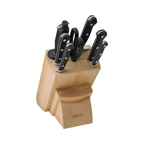 Jogo de Facas 8 Peças Tramontina Century 24099035 Preto Em Aço Inox e Cabos de Policarbonato e Fibra de Vidro com Suporte em Madeira