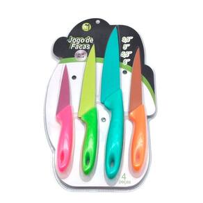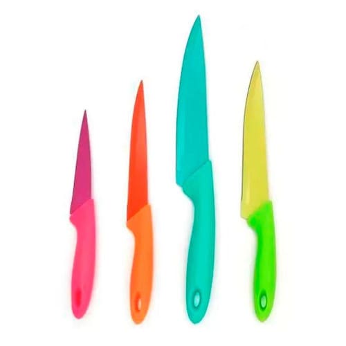 Descriçãokit jogo de facas home&moreFoto real do produto, tirada por nossa equipeUm ótimo kit de facas que trará mais cor e alegria à sua cozinha além do toque especial das cores, também tem muita qualidade e corta super bem.Informações do produto:- cor: lilás, verde, azul e laranja- medidas: 3,5 18,5 cm ; 5,5 23 cm ; 6 27 cm e 5 21,4 cm - material: aço inox, metal e plásticocontém:- 1 faca lilás de 18,5 cm- 1 faca verde de 23 cm- 1 faca azul de 27 cm- 1 faca laranja de 21,5 cm Marca: Home & More Ean: 7904390939960