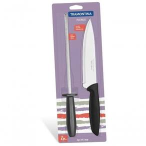 Suas melhores receitas vão ficar ainda mais saborosas com o jogo de faca com chaira Tramontina Plenus com lâminas em aço inox e cabos de polipropileno preto 2 peças. Ideais para o corte de diversos alimentos e para afiar ou manter o fio, as duas peças são produzidas com materiais de qualidade. Os cabos em polipropileno na cor preta são resistentes e confortáveis durante o manuseio. A lâmina da faca é em aço inox e se adequa a todo tipo de uso. Perfeitas para o preparo de alimentos ao de mesa. Fáceis de limpar, podem ser levadas à máquina de lavar louças.