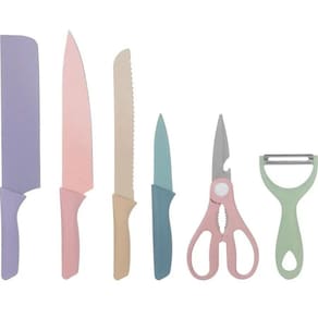Quer dar vida àquela cozinha pálida e sem graça Que tal começar com um conjunto de facas maravilhoso e de alta qualidade Conjunto de facas em Aço Inoxidável com tratamento antiferrugem e revestimento colorido. Cabos fabricados em polipropileno e superfície antiderrapante, proporcionam conforto e estabilidade no manuseio das facas.