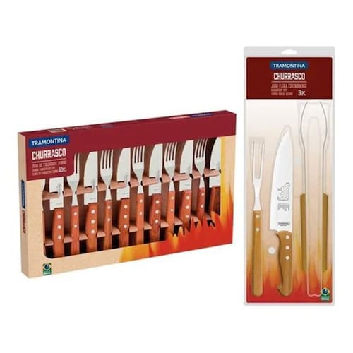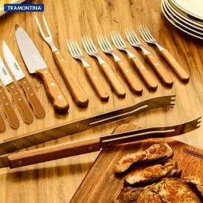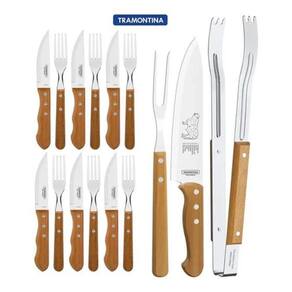 Jogo De Facas Para Churrasco Dynamic Tramontina 15pç Madeira Novo Kit Pata Churrasco Dynamic Especializado para churrascos também Profissionais