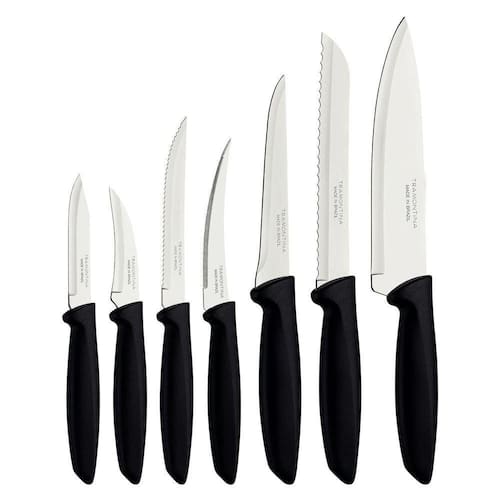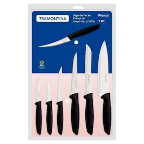 Sabe aquele item para completar sua cozinha e agregar a ela ainda mais eficiência e praticidade? Ele é com certeza, o jogo de facas Tramontina Plenus com lâminas em aço inox e cabos de polipropileno preto 07 peças. Ele é composto por itens de diferentes utilidades, como faca para desossa, para tornear, para legumes e frutas, para pão e chef, todas produzidas com lâminas em aço inox com tratamento térmico e cabo de polipropileno. Devido a essas características, as facas garantem maior durabilidade no fio devido de corte, maior resistência e durabilidade. Todas elas ainda podem ir à máquina de lavar louças e vão otimizar suas seu dia a dia na cozinha!