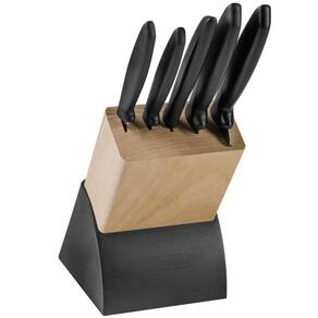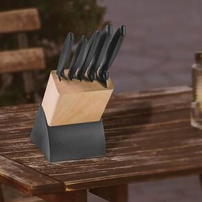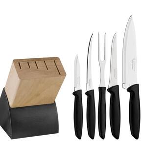 Jogo de Facas Tramontina Plenus com Lâminas em Aço Inox Cabos de Polipropileno Preto e Suporte de Madeira 6 Peças.