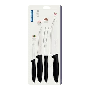 O jogo de facas Tramontina Plenus com lâminas em aço inox e cabos de polipropileno preto 4 peças é perfeito para diferentes cortes na cozinha. As quatro peças atendem diferentes usos: desde o preparo dos alimentos ao de mesa. Produzidas com cabos de polipropileno e lâminas em aço inox, são resistentes e fáceis de manusear, podendo ser utilizadas na lava louças. O design moderno permite que elas estejam em preparações que vão desde o café da manhã ao jantar. A escolha certa para suas necessidades na cozinha.