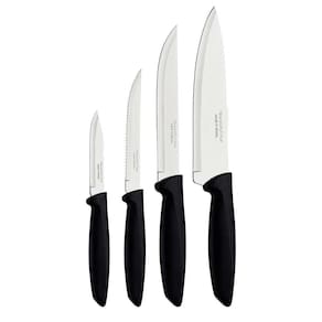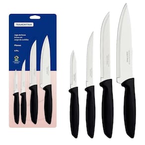 Jogo De Facas Tramontina Plenus C/Lâminas Aço Inox 4 Peças O jogo de facas Tramontina Plenus com lâminas em aço inox e cabos de polipropileno preto 04 peças será seu ajudante perfeito na hora de preparar suas refeições, sejam elas com carnes, legumes ou frutas. Perfeito para uso diário, ele é composto por facas desenvolvidas com lâminas em aço inox com tratamento térmico e devido a isso, garantem um excelente fio de corte. Os cabos são em polipropileno na cor preta, são resistentes e duráveis, podendo ainda, ir à máquina de lavar louças. Escolha Tramontina e deixe seu dia a dia na cozinha muito mais prático Faca para Churrasco/ Frutas 5 Plenus Faca para Legumes e Frutas 3 Plenus Faca para Cozinha 6 Plenus Faca Chef 7 Plenus Lâminas de aço inox com maior durabilidade do fio devido ao tratamento térmico. Cabos de polipropileno com maior resistência e durabilidade. Podem ir à máquina de lavar louças facilitando seu dia a dia. Marca: Não Informado Ean: 7890803138092