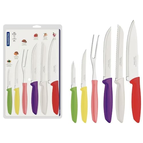 Jogo De Facas Tramontina Plenus Colorido 6 Peças Aço Inox