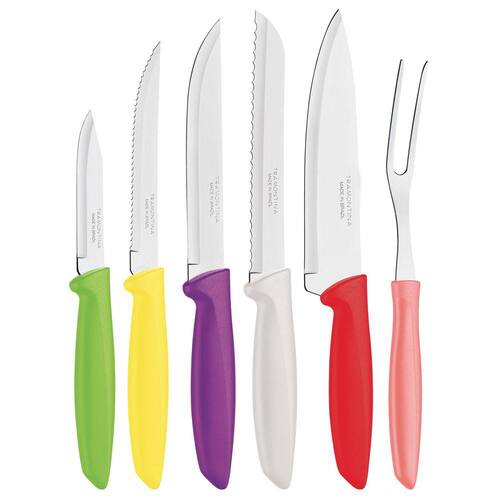 Jogo de Facas Tramontina Plenus com Lâminas em Aço Inox e Cabos de Polipropileno Colorido 6 Peças O Jogo de Facas Tramontina Plenus com Lâminas em Aço Inox e Cabos de Polipropileno Colorido 6 Peças da Linha Plenus vai deixar sua cozinha mais divertida e colorida. Produzidas com cabos em polipropileno em variadas cores, possuem lâmina em aço inox. São seis peças versáteis que atendem a diferentes funcionalidades e podem ser utilizadas na máquina de lavar louças. O jogo é a escolha perfeita para as reuniões com os amigos e as receitas do dia-a-dia. Informações Gerais As lâminas de aço inox tem maior durabilidade do fio devido ao tratamento térmico. Os cabos de polipropileno possuem maior resistência e durabilidade. Podem ir à máquina de lavar louças facilitando seu dia a dia.