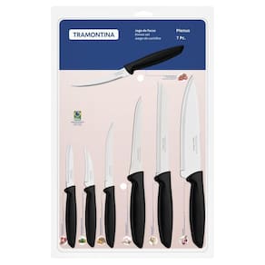 Jogo De Facas Tramontina Plenus Com Lâminas Em Aço Inox E Cabos De Polipropileno Preto 07 Peças Jogo de Facas Tramontina Plenus com Lâminas em Aço Inox e Cabos de Polipropileno Preto 07 Peças Sabe aquele item para completar sua cozinha e agregar a ela ainda mais eficiência e praticidade? Ele é com certeza, o jogo de facas Tramontina Plenus com lâminas em aço inox e cabos de polipropileno preto 07 peças. Ele é composto por itens de diferentes utilidades, como faca para desossa, para tornear, para legumes e frutas, para pão e chef, todas produzidas com lâminas em aço inox com tratamento térmico e cabo de polipropileno. Devido a essas características, as facas garantem maior durabilidade no fio devido de corte, maior resistência e durabilidade. Todas elas ainda podem ir à máquina de lavar louças e vão otimizar suas seu dia a dia na cozinha!