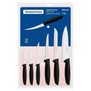 Jogo de Facas Tramontina Plenus com Lâminas em Aço Inox e Cabos de Polipropileno Preto 07 Peças