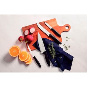 O jogo de facas Tramontina Plenus com lâminas em aço inox e cabos de polipropileno preto 04 peças será seu ajudante perfeito na hora de preparar suas refeições, sejam elas com carnes, legumes ou frutas. Perfeito para uso diário, ele é composto por facas desenvolvidas com lâminas em aço inox com tratamento térmico e devido a isso, garantem um excelente fio de corte. Os cabos são em polipropileno na cor preta, são resistentes e duráveis, podendo ainda, ir à máquina de lavar louças. Escolha Tramontina e deixe seu dia a dia na cozinha muito mais prático!Linha ou Coleção - PlenusQuantidade de Peças - 4Composição - 1 Faca para Legumes e Frutas 3"1 Faca para Churrasco e Frutas 5"1 Faca para Cozinha 6"1 Faca Cheff 7"Material Principal - Aço InoxCabo - PolipropilenoCor - PretoMais Informações - Lâminas de aço inox com maior durabilidade do fio devido ao tratamento térmico.Cabos de polipropileno com maior resistência e durabilidade.Podem ir à máquina de lavar louças facilitando seu dia a dia.Recomendações de Uso - Antes da primeira utilização, lave bem as peças e seque-as.Produtos cortantes e perfurantes: tenha cuidado ao manusear e mantenha fora do alcance das crianças.Para maior durabilidade dos produtos recomenda-se secar bem antes de guardar, mesmo após lavagem em máquina.Recomenda-se o uso de tábuas de polipropileno ou madeira da Tramontina para maior durabilidade do fio das facas.Não é indicado o uso das facas para o corte de alimentos congelados.Mantenha sempre sua faca afiada utilizando os afiadores da Tramontina.Para descarte dos produtos e embalagens siga as orientações de reciclagem vigentes.Peso - 0,21 kgMarca - TramontinaGarantia do Fabricante - 3 meses para defeitos de fabricaçãoEAN - 7891112313446