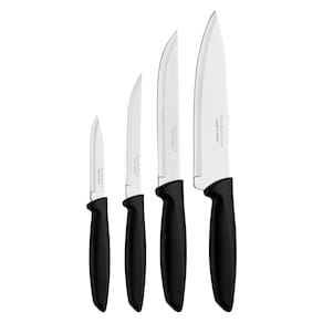Jogo De Facas Tramontina Plenus Aço Inox E Cabos De Polipropileno Preto 04 Peças