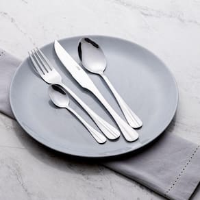 Conteúdo da embalagem: 6 Garfos, 6 Facas, 6 Colheres Sopa, 6 Colheres Sobremesa