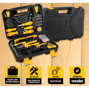 Este kit completo da Vonder é ideal para quem busca praticidade e eficiência em suas atividades de manutenção e reparos. Com 163 peças de alta qualidade, o conjunto inclui ferramentas essenciais como chaves de fenda, alicate, chaves combinadas, martelo, soquetes, bits e muito mais organizados em uma prática caixa plástica resistente. Seja para uso doméstico, automotivo ou profissional, o Jogo de Ferramentas Vonder oferece durabilidade e detalhes, atendendo desde pequenos reparos até demandas mais complexo. A escolha perfeita para quem precisa de uma solução completa e compacta!